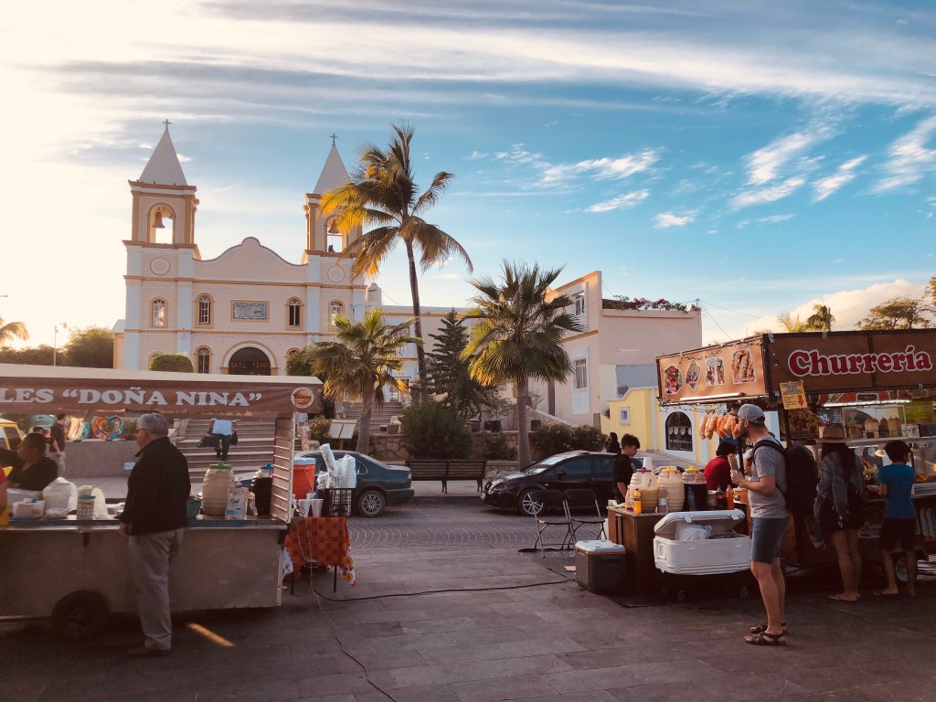 Plaza Mijares is charming. It’s dominated by the government building and Parroquia San José (the mission church) both built in 1730. Shops and restaurants surround the Plaza and on Saturday night it was filled with locals, food vendors, a book fair, and musicians performing on stage. We ducked into a restaurant on the square and enjoyed the atmosphere–sadly the churros line was too long for us!