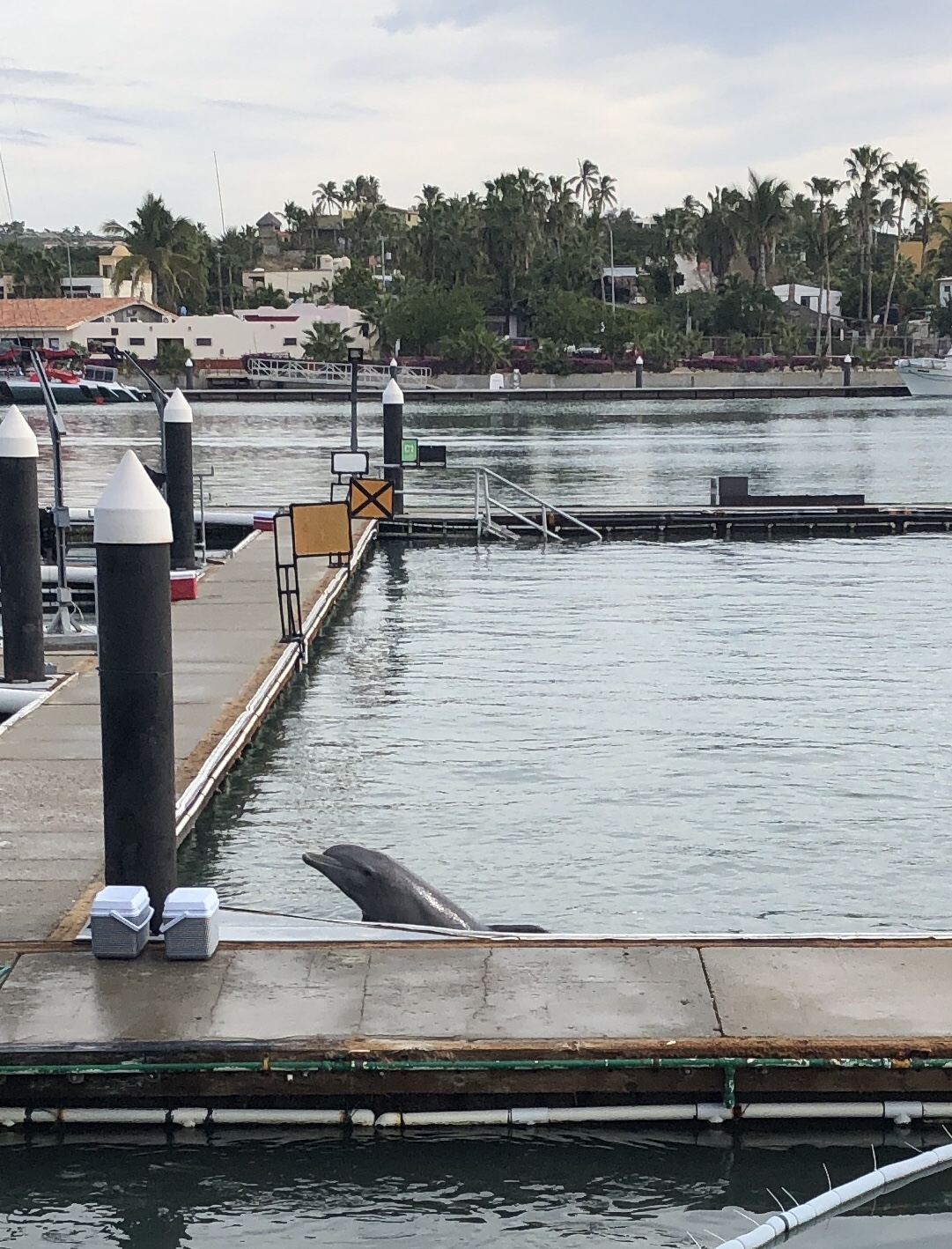 Back at the marina, ESTELLE’s east side Marina slip provided the Light Weight Sailor (LWS) a nice 20-minute walk to the beach each morning. And while the walk was lovely, it was with mixed feelings the LWS strode off each morning as the path took her directly by the dolphin pens of the Dolphin Discovery company.