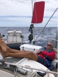On a down note, no mahi-mahi! To make matters worse yesterday something ate the hooks off of the lures? Say what? Typical is to lose a lure along with the hooks after a line breaks.  This was the strangest thing.  We, however, are not about to give up! Mahi today.  We did have a fishing boat come within a mile of us.  They had come from the South Pacific fishing for albacore and heading to ??? We believe maybe Oregon.