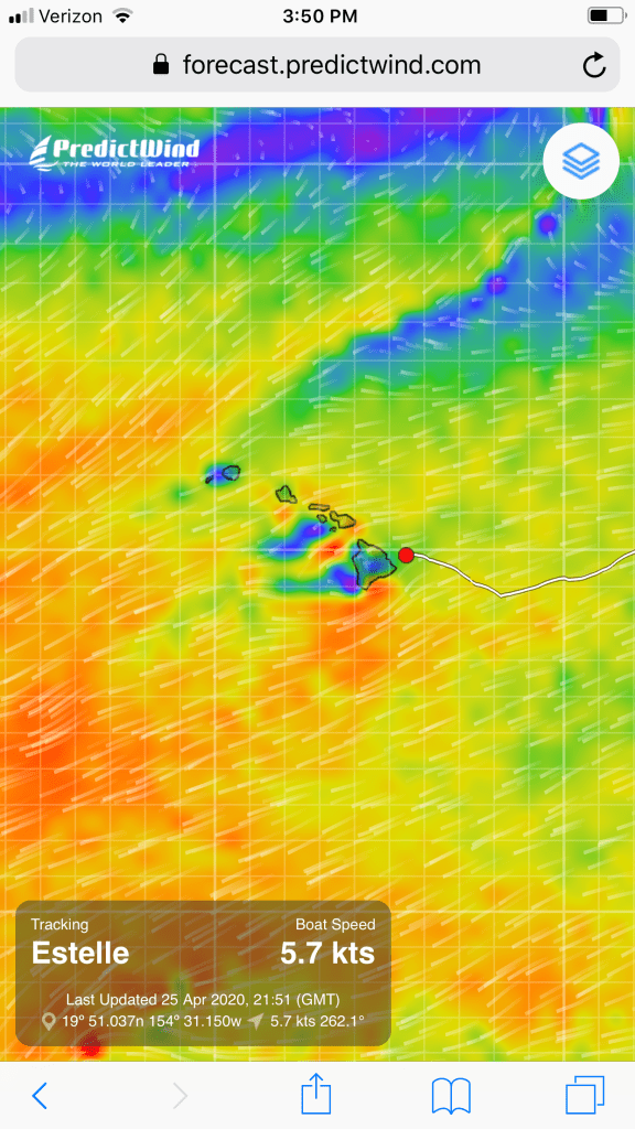 A short update. I just heard from the Galley Wench on her cell phone. They are 30 miles out, land is in sight, and they should make Hilo by dinner time—Hawaii. I will update again once they are at anchor in the harbor.